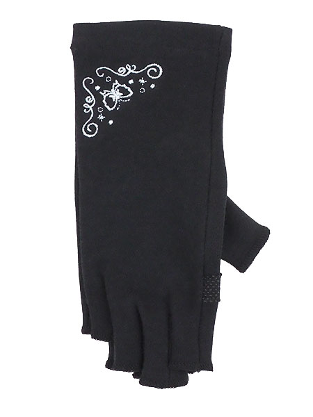 UV GLOVE 手肌美人 婦人日よけ手袋 指切り 蝶の刺繍 長さ19cm ショートタイプ