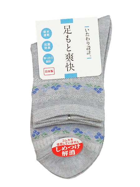 >いたわり設計 足もと爽快 締め付け解消 婦人ソックス 花柄 日本製