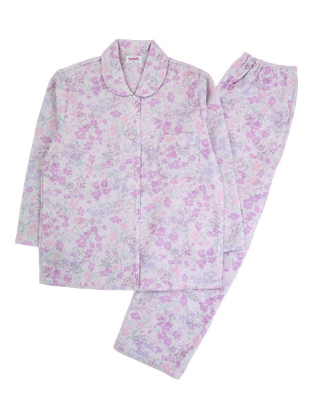 グンゼ 婦人長袖・長パンツパジャマ 極暖 裏起毛 花柄 襟付き