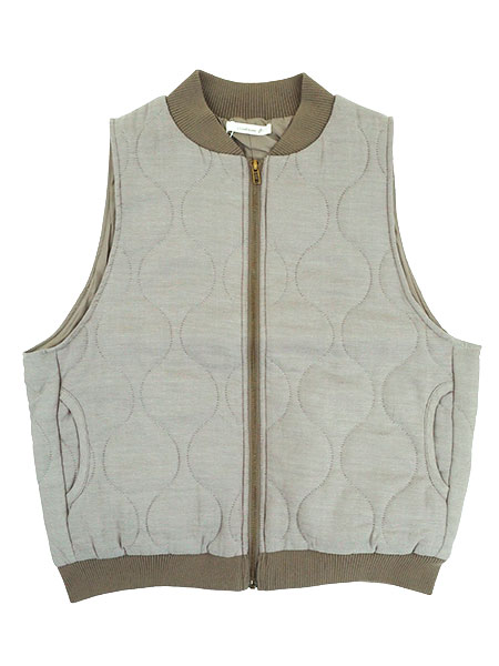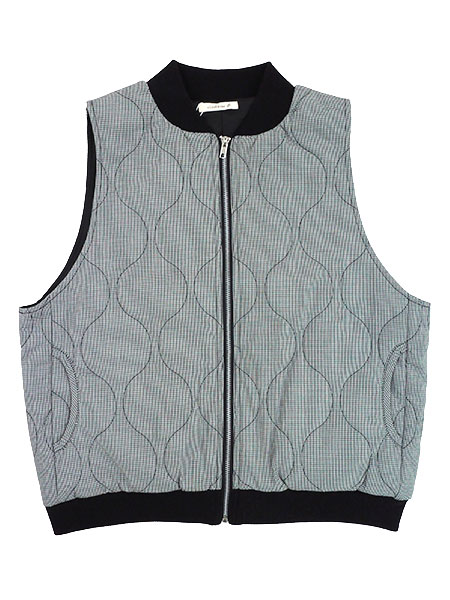 Cloudnineレディースのキルティングベスト。表がひょうたん柄中綿入りキルトで裏地がタフタ素材、襟ぐりと裾がリブになっています。前ファスナー開き、両サイドポケット付き。表地はカラーによって異なります(ネービー:デニム、モカ:コットンツイル、ブラック:コットンミニギンガム)軽くて暖かく、ロングシーズン活躍する万能アイテムです。シャツやワンピースに重ねて、こなれたレイヤードスタイルをお楽しみください。
