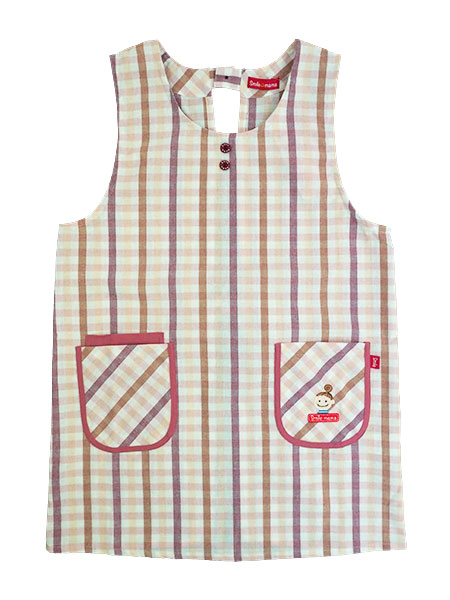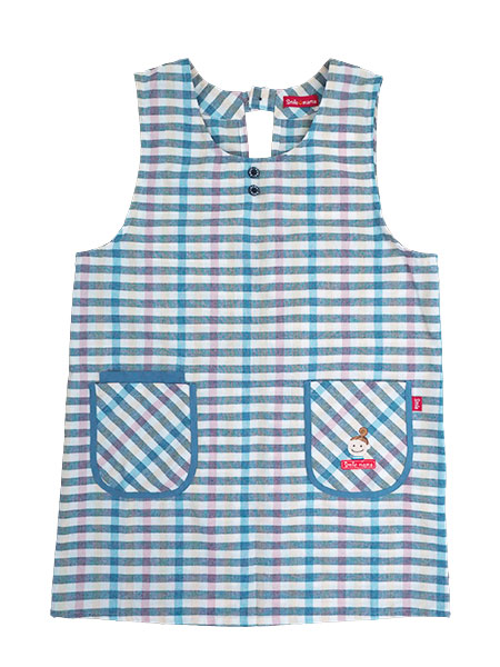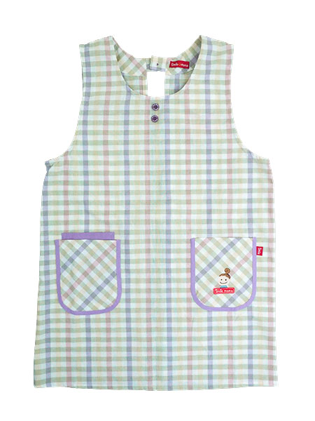 スマイルママのレディースラン型エプロン、スマホポケット。胸元に飾りボタンが2つ、ポケットにスマイルママのかわいいワンポイントがあります。右ポケットはダブルポケット仕様で、内ポケットがスマホを入れるのに丁度いいサイズになっています(横幅約10cm)。後ろは首元ワンボタン留め、ウエストひも調節となります。両サイドにポケット付き。年間を通してお使いいただける素材のエプロンです。