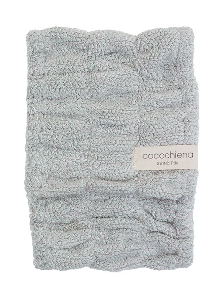 洗うほどに膨らむタオル、 cocochiena、ヘアターバン。スイッチパイル:撚り方向の違う2種類のパイルが互いに反発して立ち上がることによって、洗濯を重ねるほどにふっくら感が増します。高吸水素材:肌に直接触れない部分にマイクロファイバーを使用して、吸水力をアップしました。大判サイズでロングヘアーもしっかりまとまります。お風呂上がりのタオルドライ時や朝の洗顔時に。かわいいくすみカラー、ワンポイントのタグ付き。抗菌防臭加工。サイズ:約16×23cm