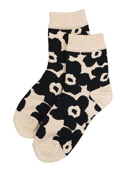 レディースのかかとカサカサ解消ソックス、花柄。保湿シートを編地ではさむ二重構造。はくだけでカカトつるつるのあったか〜い靴下。足裏のカサカサ等、荒れ防止の手入れは一切必要なく、ツルツルした美しい足を保ちます。いつも暖かく、保温力抜群です。カカトのカサカサ、ヒビ割れの方に最適!冷え性の方にもおすすめです。※薬品は全く使用しておりません、ご安心ください。サイズ:22〜24cm、丈はかかとから約13cm