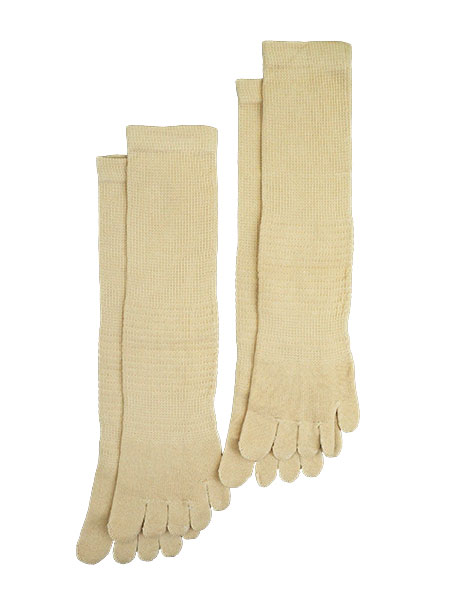 メンズのかかとなしタイプの5本指靴下、2足組です。ロンフレッシュ(天然有機系デオドラント加工)の表糸綿100%。天然由来の原料から生成された抗菌剤を特殊な方法で繊維に結合させ、臭いの原因となる繊維状の常在菌が繁殖するのを抑制します。はき口にゴム入り、甲部分にサポート。日本製。サイズ:フリーサイズ、23〜27cm、丈はつま先から約40.5cm