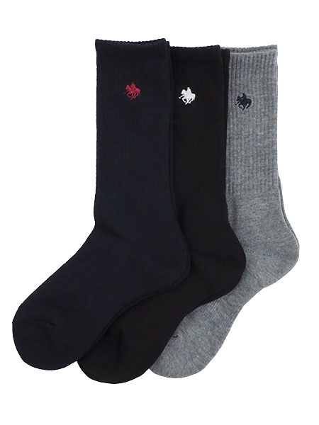 GUNZE(グンゼ)POLOメンズのリブソックス、無地、3PACK、抗菌消臭。足底を押し上げるアーチサポート、土踏まずアップで快適。つま先かかと足底クッションパイル。左右外側にワンポイントのPOLOのロゴマーク刺しゅう入り。サイズ:25〜27cm、丈はかかとから約25cm