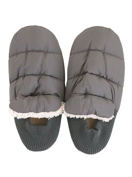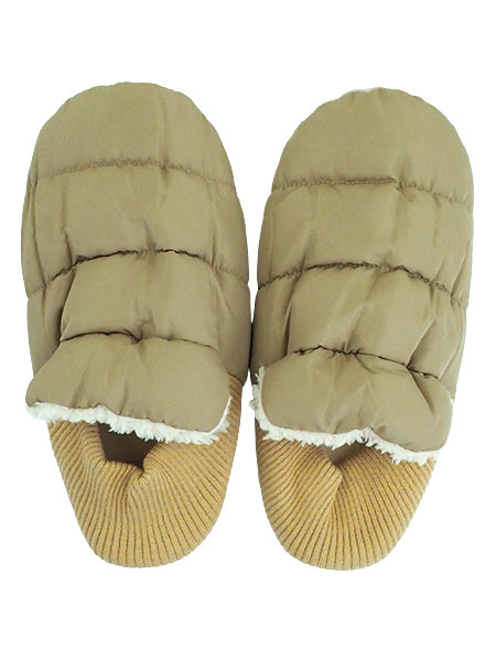 素材:表地・裏地:ポリエステル100% かかと:ポリエステル97%・ポリウレタン3% 中わた:ポリエステル90%・合成繊維(アクリレート系)10% 足底:ポリエステル100%(ポリウレタンコーティング)