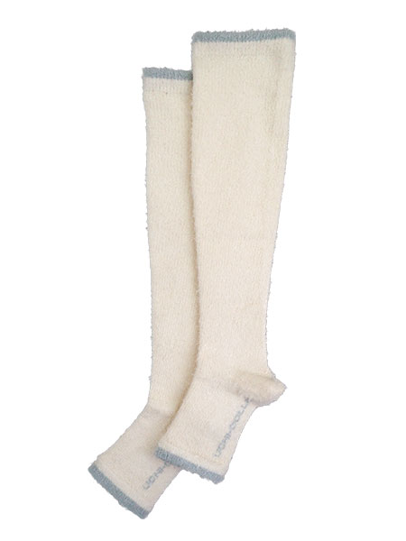 GUNZE(グンゼ)UCHI-COLLE(ウチコレ)履くだけすっきりナイトソックス。トゥレス ハイソックスタイプ。おうち時間を有効活用。やわらか素材でリラックス。しっかり引き締め。伸縮性にすぐれ無理なくフィット、もこふわムース素材。やわらか生地なのに足首からしっかり着圧(足首17hPa)で引き締め効果。サイズ:23〜25cm、丈はかかとから約36cm