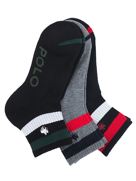 GUNZE(グンゼ)POLOメンズソックス、ショート丈、3PACK、抗菌消臭。足底を押し上げるアーチサポート、土踏まずアップで快適。つま先かかと足底クッションパイル。足首にアクセントカラーのライン、左右外側にワンポイントのPOLOのロゴマーク刺しゅう入り。サイズ:25〜27cm、丈はかかとから約11cm