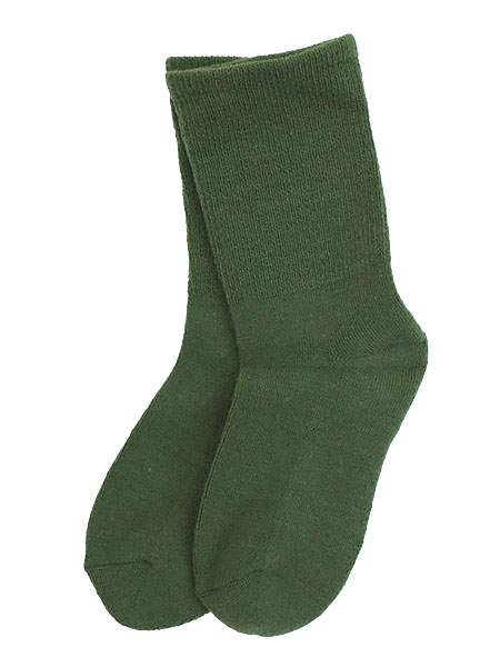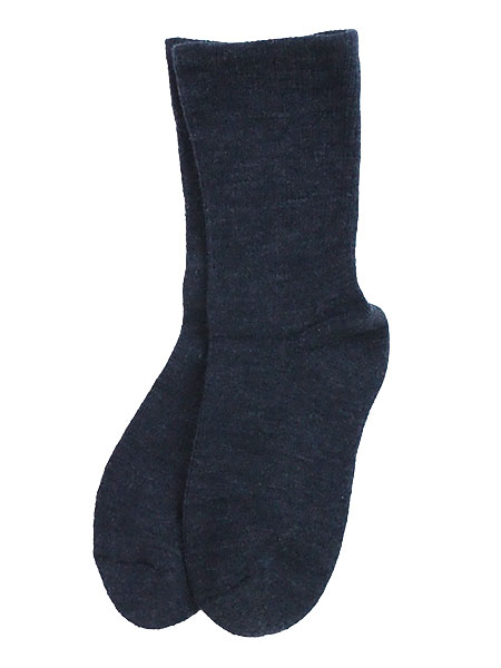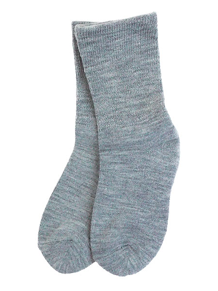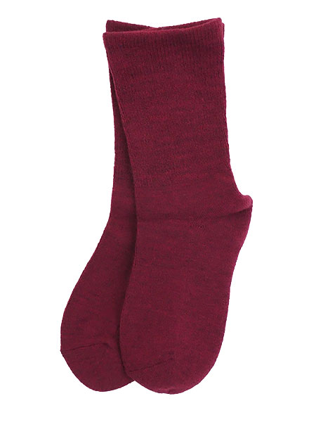 いたわり設計シリーズ、レディースのパイルソックス、クルー丈。足底部分がパイル編みのふかふかでクッション性のある靴下です。シンプルな無地タイプで毛混のあったかソックス。日本製。サイズ:22〜24cm、丈はかかとから約18cm