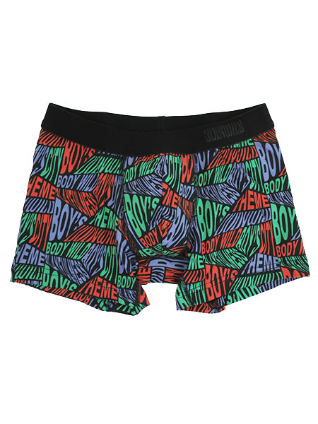 グンゼ、ボディワイルドのメンズボクサーパンツ(前とじ)、肌にやさしい綿混素材、ロゴ柄。BODYWILDなどの英字が流れるように配置された粋なデザインのボクサー。綿の風合いプラスストレッチ、綿の柔らかな肌触りと、ストレッチ性のある素材を使用。だから動きやすくて、快適フィット。