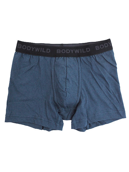 グンゼ、ボディワイルドのメンズボクサーパンツ(前あき)、デニム調。肌にやさしい綿混素材で、動きやすく快適、ストレッチがきいてて、綿の風合いが気持ちいい。腰ゴムにロゴ入り、シンプルなデニム調。