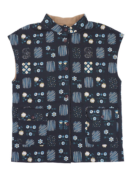れんげ 婦人前あき裏フリース和柄ベスト カイロポケット付き