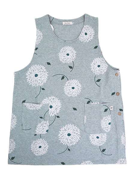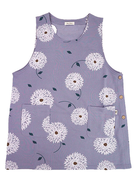 Hand Made 裏起毛ニット タバードエプロン ゆったりLL-3Lサイズ かぶりタイプ 花柄