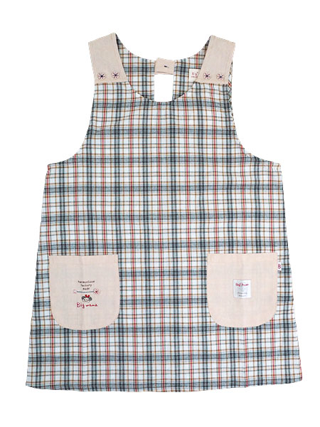 Big mama(ビッグママ) ラン型エプロン チェック柄 ウエスト紐タイプ