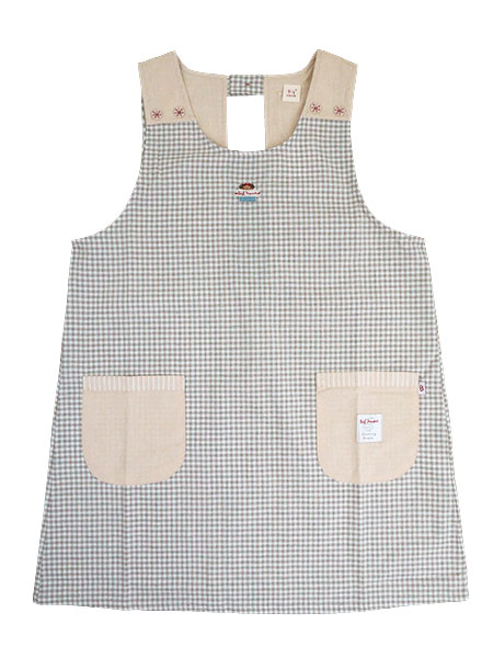 Big mama(ビッグママ) ラン型エプロン かぶりエプロン チェック柄 後ろゴム
