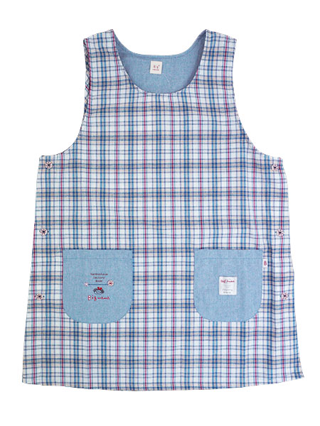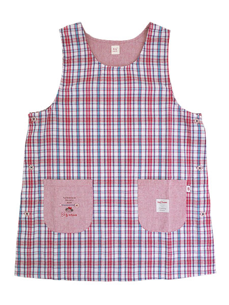 Big mama(ビッグママ) ラン型 かぶりエプロン サイドボタン チェック柄 タバード