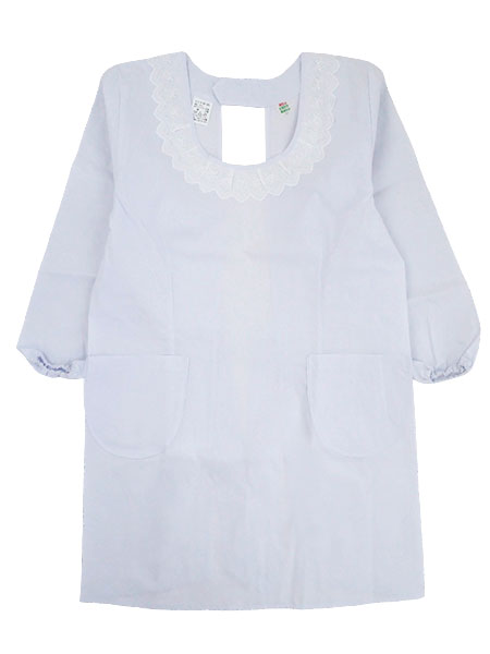 白の洋装割烹着、M寸丸衿85cm丈です。