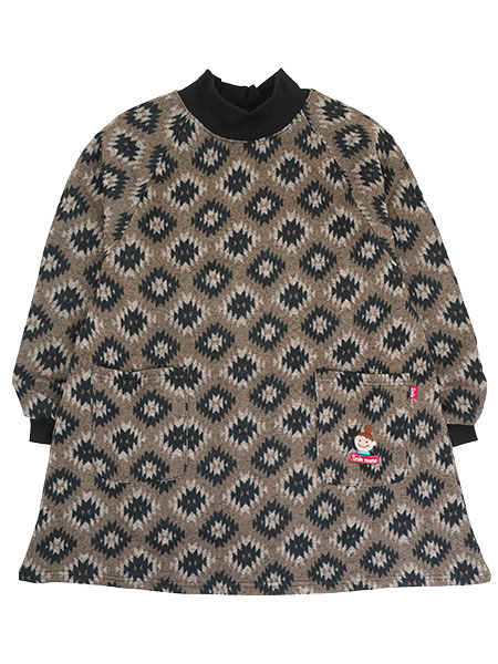 Smile mama(スマイルママ) あったか杢ニット裏起毛 かぶり割烹着 幾何学柄