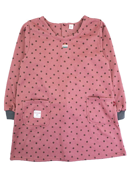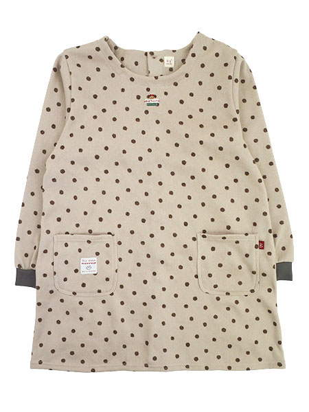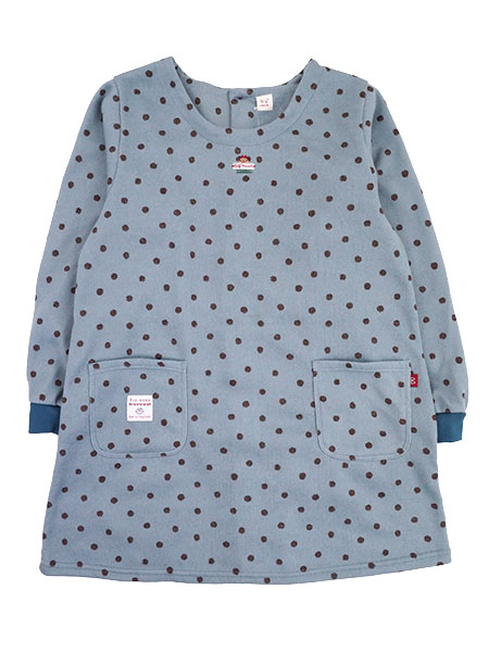 Big mama(ビッグママ) 裏起毛ニット割烹着 水玉柄 背ボタン