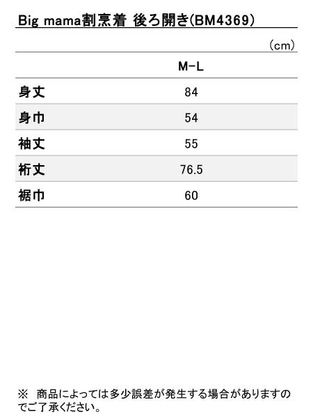 Big mama(ビッグママ) コール天割烹着 裏フリース 無地 後ろ開き