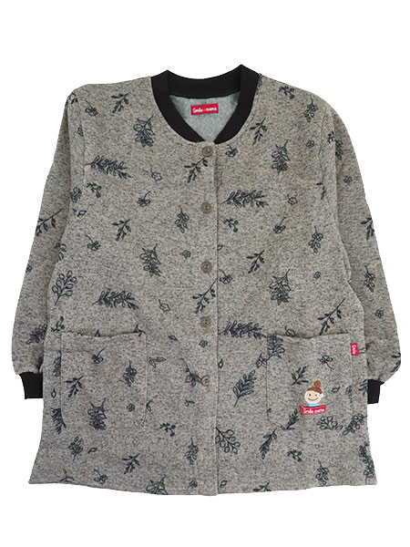 Smile mama(スマイルママ) 杢ニット裏起毛 前あきスモック 草花柄
