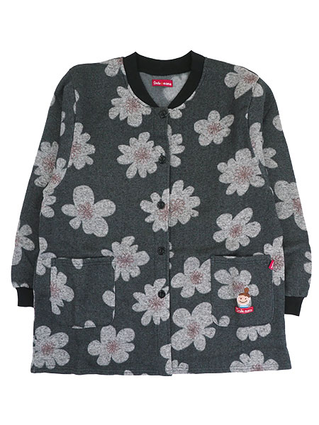 Smile mama(スマイルママ) 杢ニット裏起毛 前あきスモック 花柄
