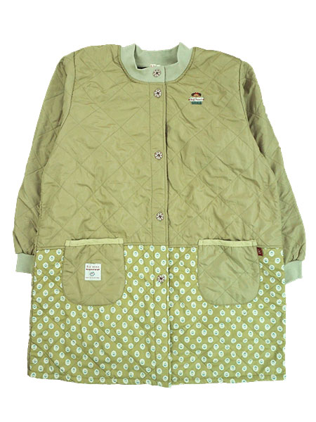 Big mama(ビッグママ) 裏フリース前開きキルトスモック 無地&花柄