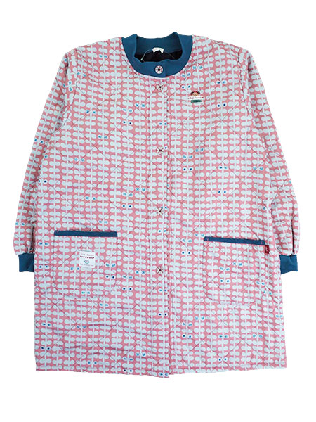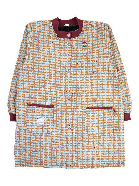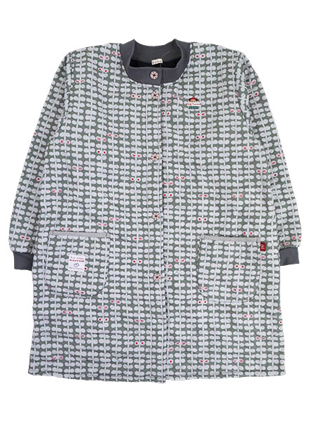 Big mama(ビッグママ) 裏フリース前開きキルトスモック 幾何学柄