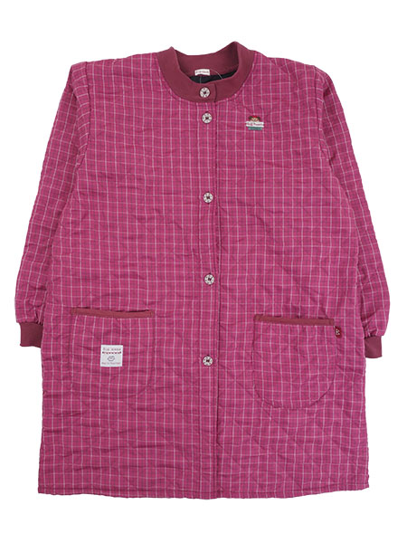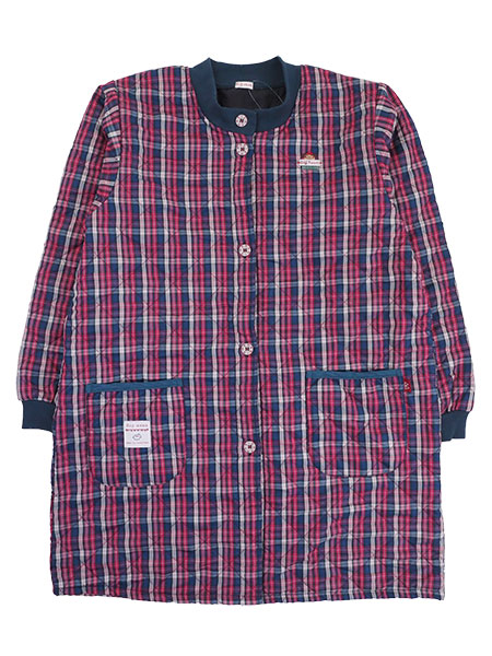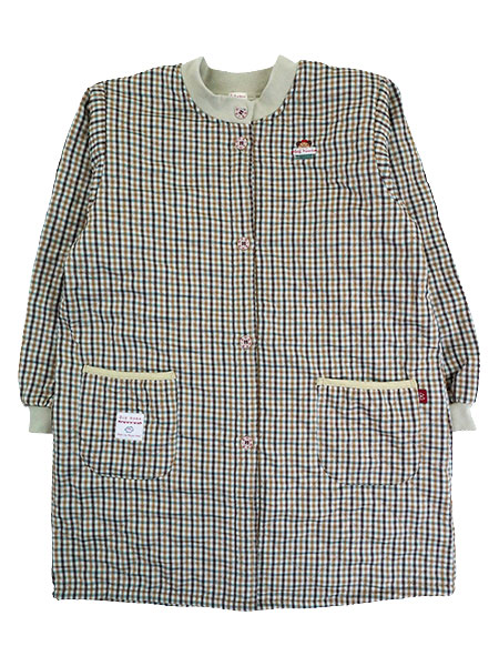 Big mama(ビッグママ) 裏フリース前開きキルトスモック チェック柄