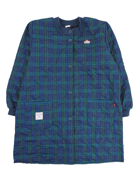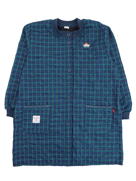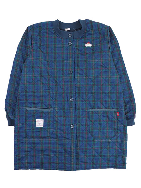 Big mama(ビッグママ) 裏フリース前開きキルトスモック グリーンチェック柄