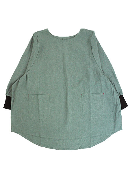 naturic タブリエ割烹着 無地 cotton100% 袖口リブ かぶりタイプ