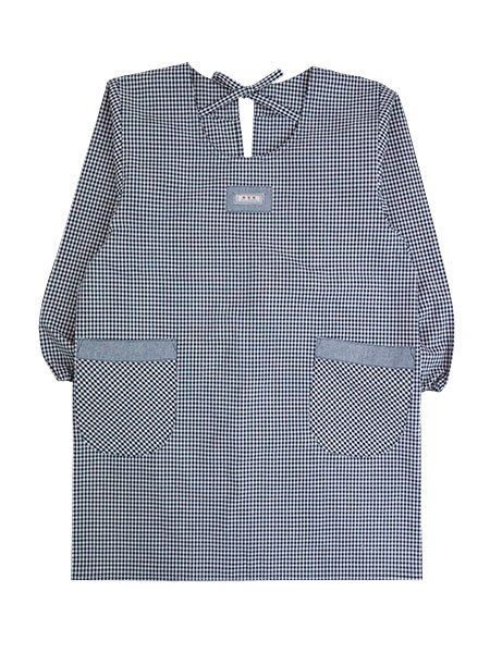 QHOUSEのレディースカッポー。 綿混ギンガム格子柄エプロン、約81.5cm丈。