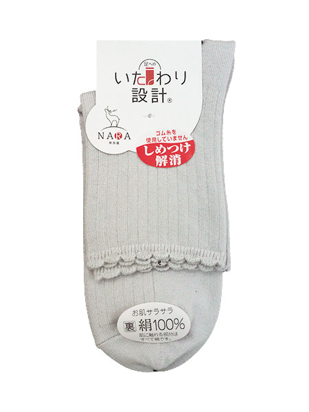 いたわり設計 婦人カジュアルソックス 締め付け解消 裏絹100% リブ