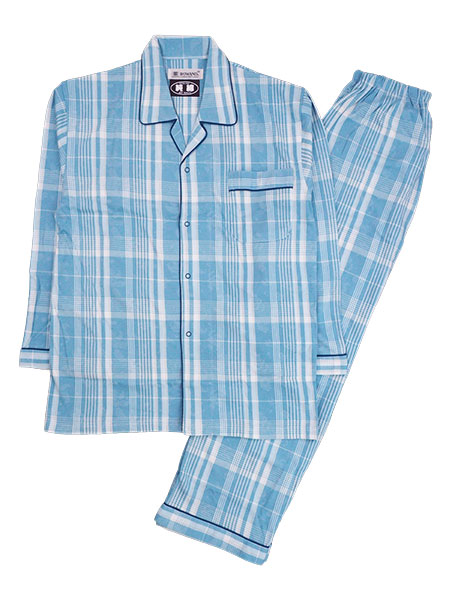 ROWAND(ロワンド)紳士長袖・長パンツパジャマ 日本製 綿100% スムース チェックペイズリー