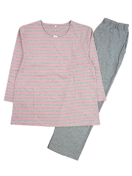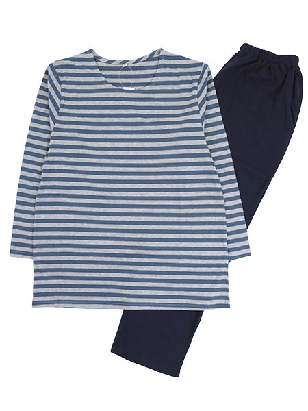 >NERUGY 婦人長袖・長パンツパジャマ 綿100% 天竺 ボーダー柄×無地