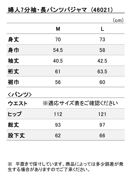 NERUGY、レディース7分袖・長パンツパジャマ。