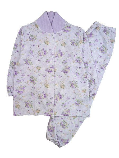 GUNZE(グンゼ)婦人長袖・長パンツパジャマ 襟元保温 花柄 ソフトキルト
