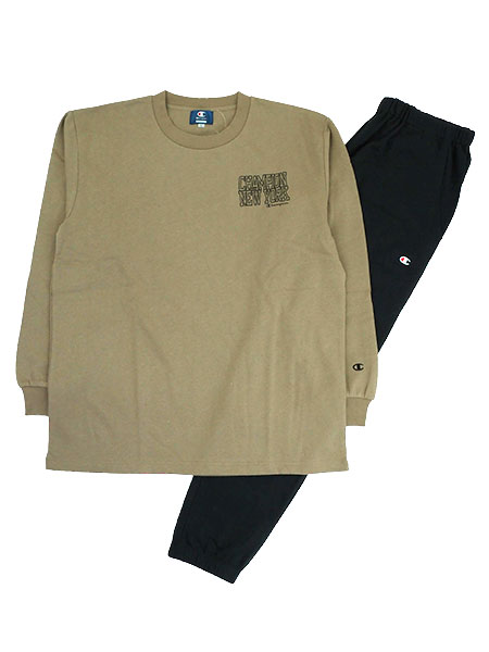 グンゼ Champion(チャンピオン)紳士長袖・長パンツパジャマ 裏毛起毛 左胸にロゴプリント