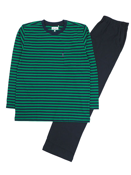 グンゼ コムシコムサ 紳士長袖・長パンツパジャマ ボーダー柄 先染天竺