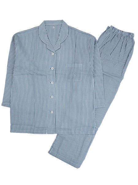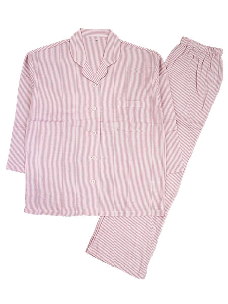 グンゼ アセドロン 婦人長袖・長パンツパジャマ ストライプ柄 Wガーゼ
