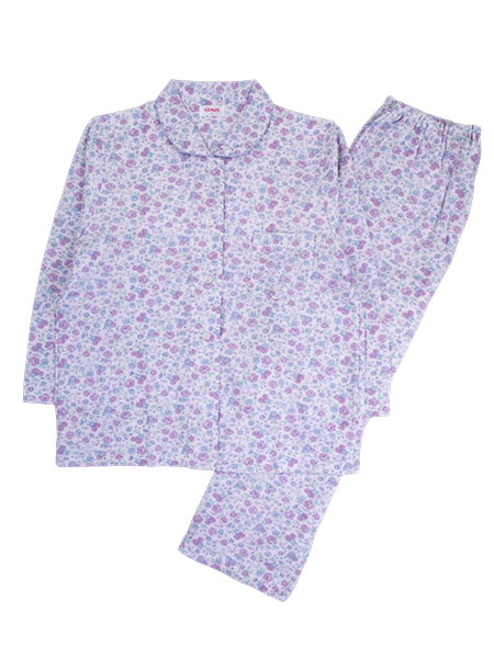 グンゼ ホットマジック 婦人長袖・長パンツパジャマ 肩ももW保温 襟付き 花柄