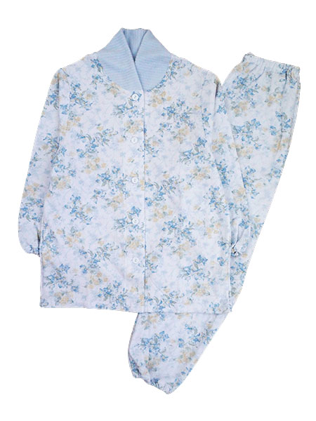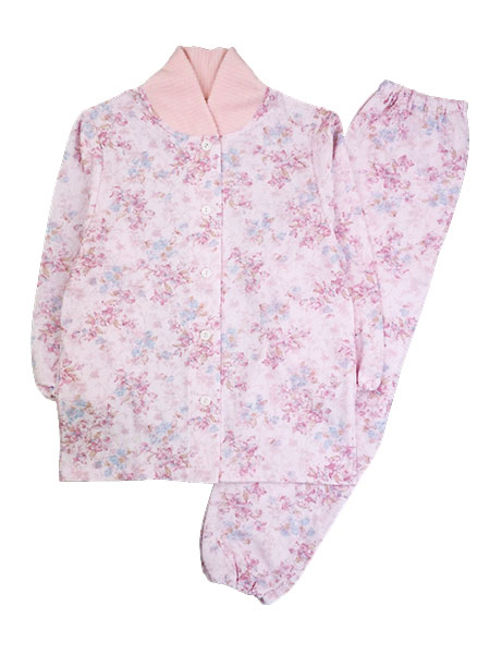 グンゼ 婦人長袖・長パンツパジャマ 襟元保温 花柄 ソフトキルト