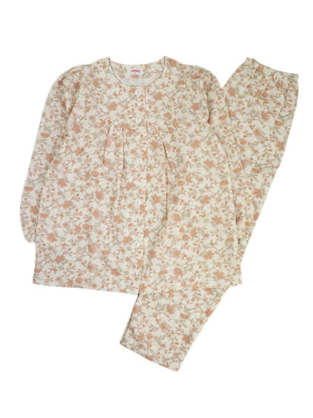 グンゼ 婦人長袖・長パンツパジャマ 大きめ釦 京都捺染 ソフトキルト 花柄