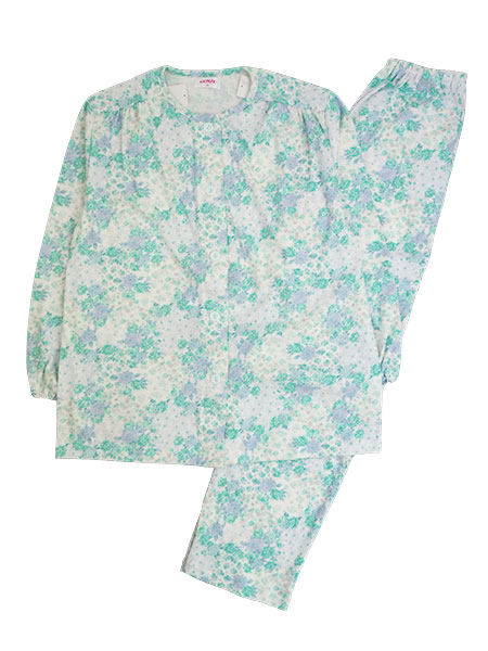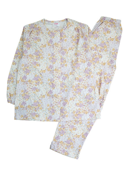 >グンゼ 婦人長袖・長パンツパジャマ 京都捺染 日本製 綿100%スムース