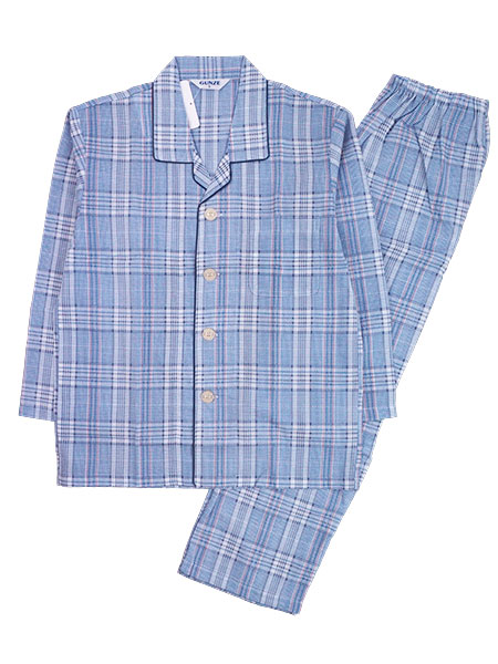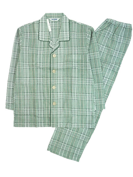 グンゼ 紳士長袖・長パンツパジャマ 大きめ釦 京都捺染 綿100%ソフトクレープ