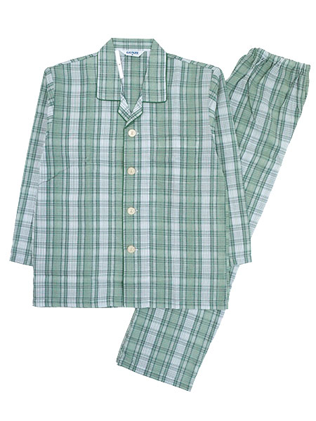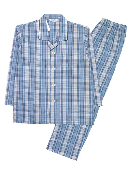 グンゼ 紳士長袖・長パンツパジャマ 大きめ釦 京都捺染 綿100%ソフトクレープ