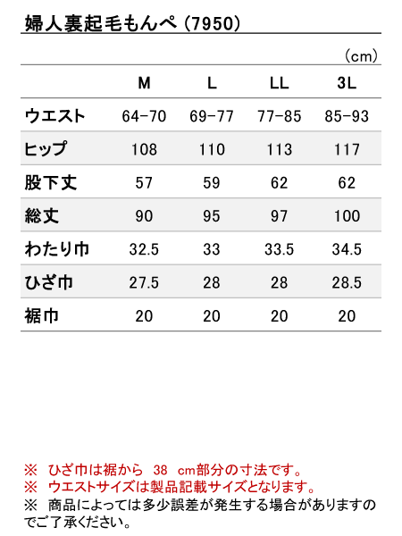ゴム入りの裾で裏起毛の冬用あったかもんぺ