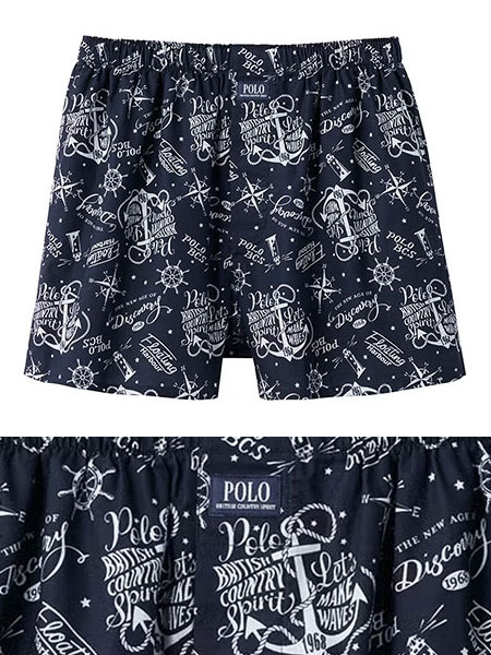 グンゼ POLO(ポロ) 紳士トランクス(前あき) 英字のプリント柄