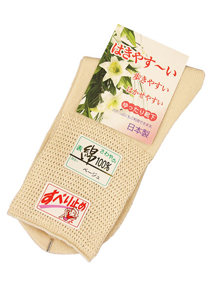 >婦人ソックス はきやす〜い ゆったり靴下 すべり止め付 表糸綿100%