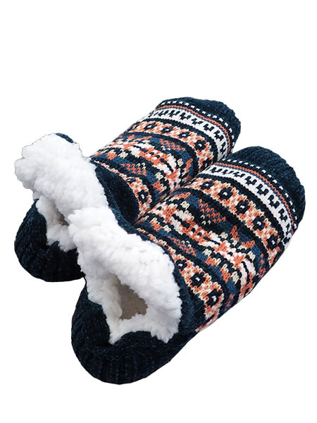 GUNZE(グンゼ)ウチコレ 婦人ルームシューズ 裏ボア ノルディック柄のカラー ネービー